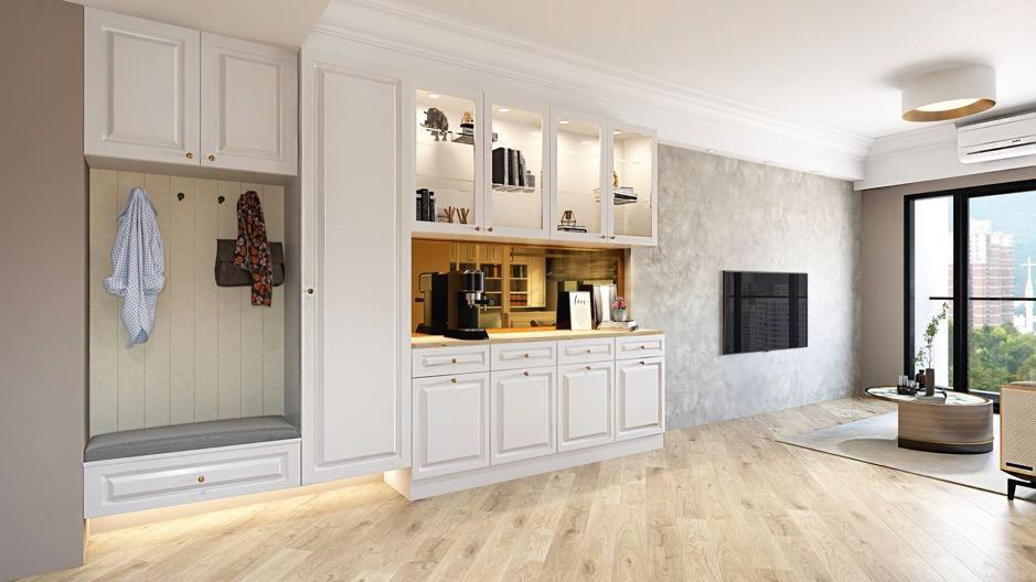 採用沉穩溫暖的大地色系如米色、白色、卡其、淺咖啡等,揉入灰色、灰藍、粉綠,建構出自在怡人的典雅氣息。